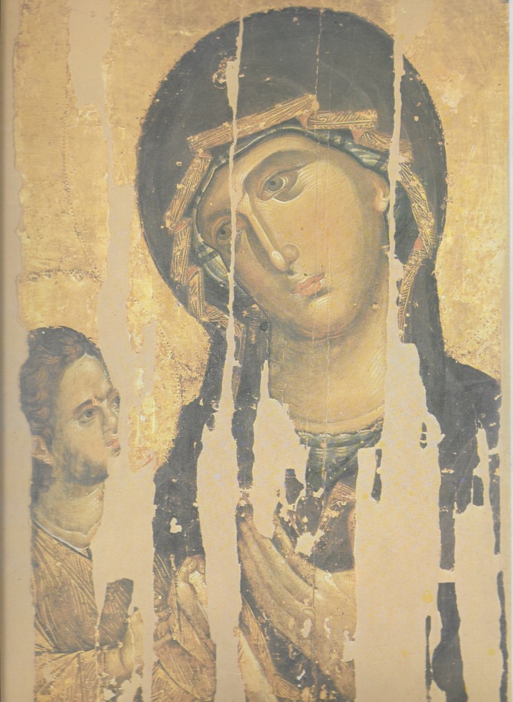 L’enfant et la mère sont représentés dans une posture plus « égalitaire », comme dans une conversation. J’ai toujours connu cette icône dans cet état, endommagée, avec des étendues écaillées … Je n’essaie même pas de la reconstituer dans mon imagination, je la prends comme telle, comme je l’ai toujours connue. S’il venait à quelqu’un l’idée de la restaurer, je pense que j’aurais du mal à l’accepter, je ne la reconnaîtrais plus …